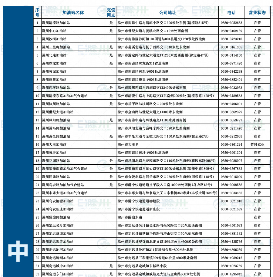 中石油滁州公司新增站點: