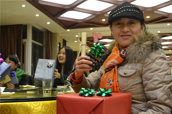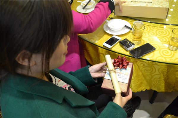 讓人啼笑皆非的蒙眼吃南瓜比賽結(jié)束之后,緊接著便是感恩節(jié)的主題活動——感恩送禮環(huán)節(jié)。大家互送禮物,相互擁抱,用最溫暖的方式表達著彼此之間的感恩之情。