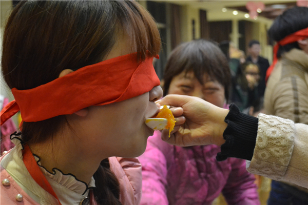 蒙著眼睛吃,蒙著眼睛喂,看誰吃的快