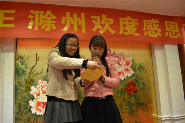 感恩節(jié)是一項愉快的慶祝活動,是一個家庭團聚的日子,是好友重敘友情的時刻。對平日工作在一起的小伙伴們而言,過感恩節(jié)更是對過去一年來的生活和工作的回顧和總結(jié)。為了讓全體員工在這個溫馨的節(jié)日里,延伸感恩的意義,用實際行動對家人、同事、朋友、公司......表達濃濃的感恩之情,為了讓全體員工過一個快樂、有意義的感恩節(jié),2014年11月27日晚,E滁州網(wǎng)站舉辦了溫馨而又快樂的歡度感恩節(jié)活動。