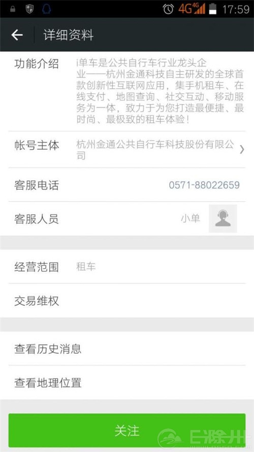 第二步,點擊“關(guān)注”進入i單車微信平臺