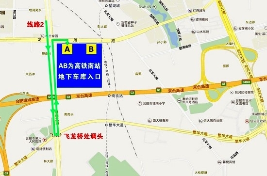 1.不管你從哪個方向來,都請繞行到龍川路。因為南站唯一一處地下停車場兩個入口均在龍川路上。龍川路上分別有社會車輛A、B兩個入口:A入口在徽州大道與龍川路交口東南角,當您通過這個路口拐上龍川路,看到路南面有個大大的“P”字時,A入口就到了;如果您錯過了這個入口,再沿龍川路向東開,在龍川路與仙人石路交叉口處,就是B入口。